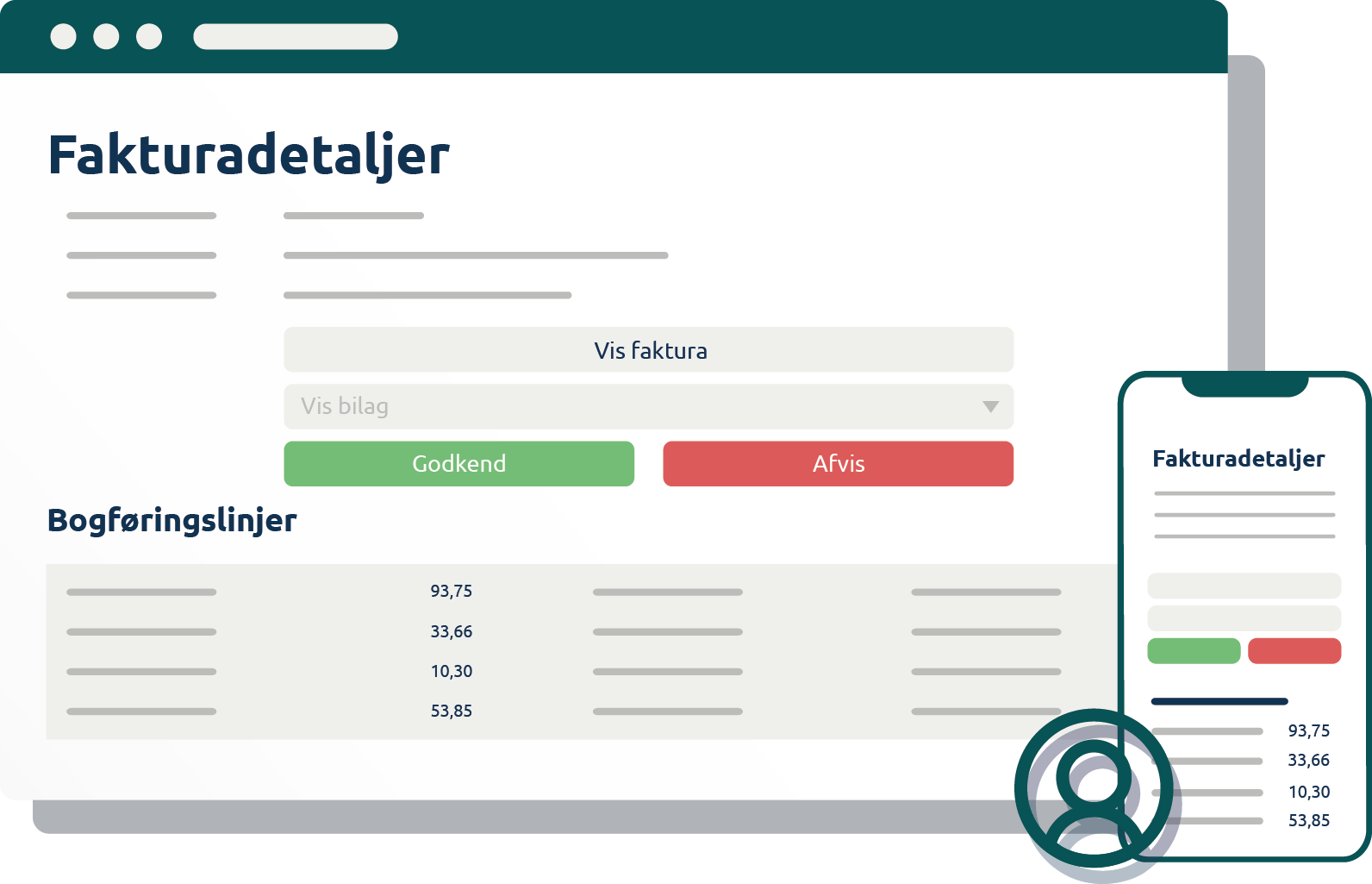 Godkend fakturaer på farten via webapp til smartphone og tablet med fuld funktionalitet. Det giver dig og dine medarbejdere fleksibiliteten til at gøre arbejdsdagen nemmere og meget mere simpel.